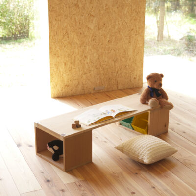 奈良県吉野杉のもくわくと、吉野ひのきの天板で構成する