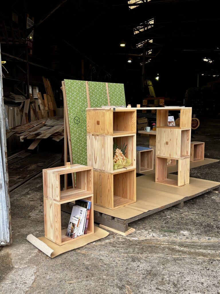 中央広場の楽しい様子と吉野中央木材さんでの「もくわく」展示、工場見学について記録します。