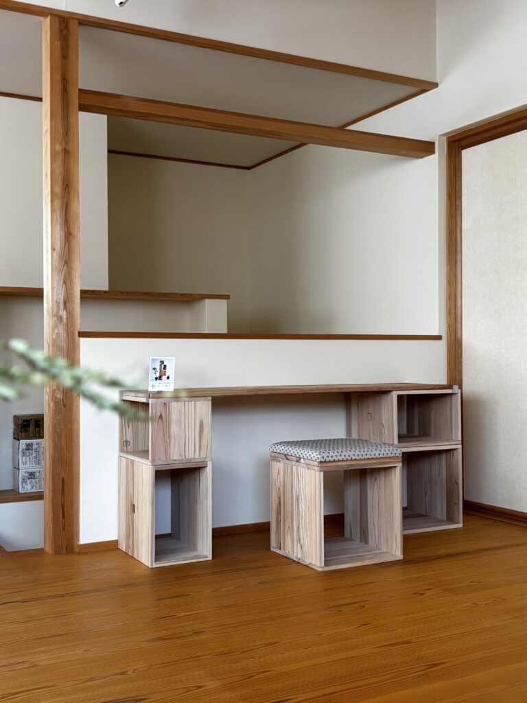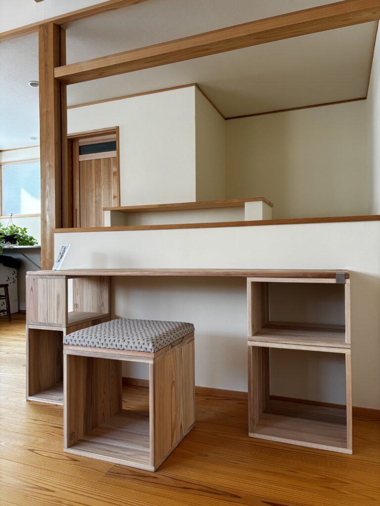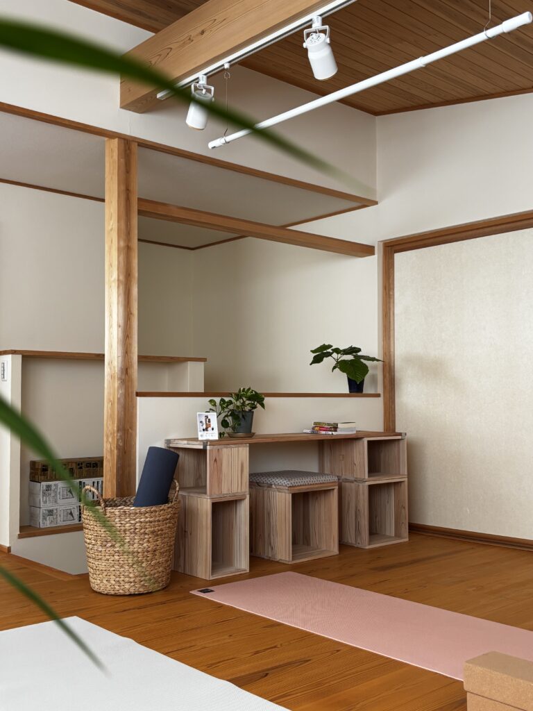 京都市伏見区にある「ゆるりヨガ教室」さんのカウンターデスクとして、京都杉のもくわく&津久井杉のおざぶを使っていただいています!